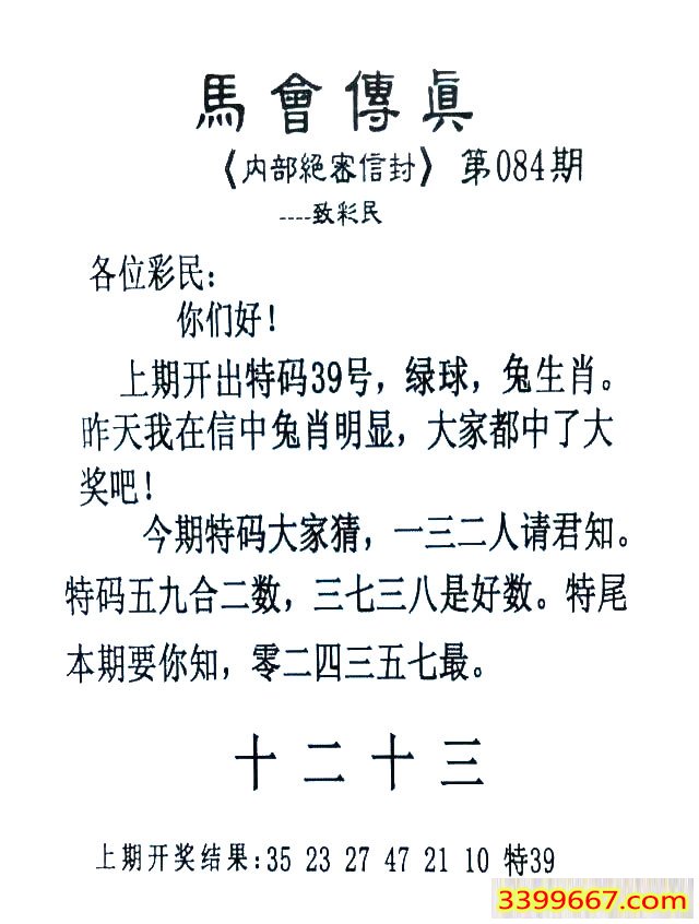 | 主题 :084期:首发推荐:≮馬會傳眞≯→(香港正版) |