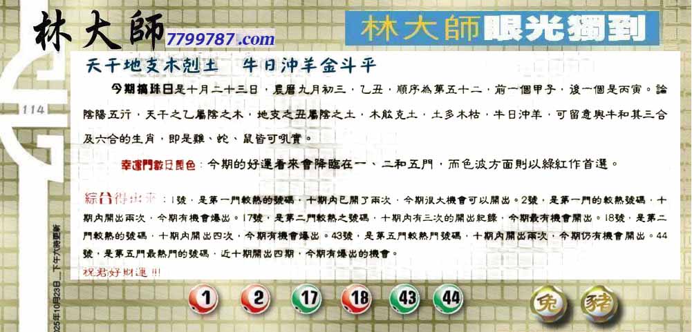 | 主题 :114期:六合皇金句/老总论码/萧公子/林大师/五行夺码/老总信箱截 |
