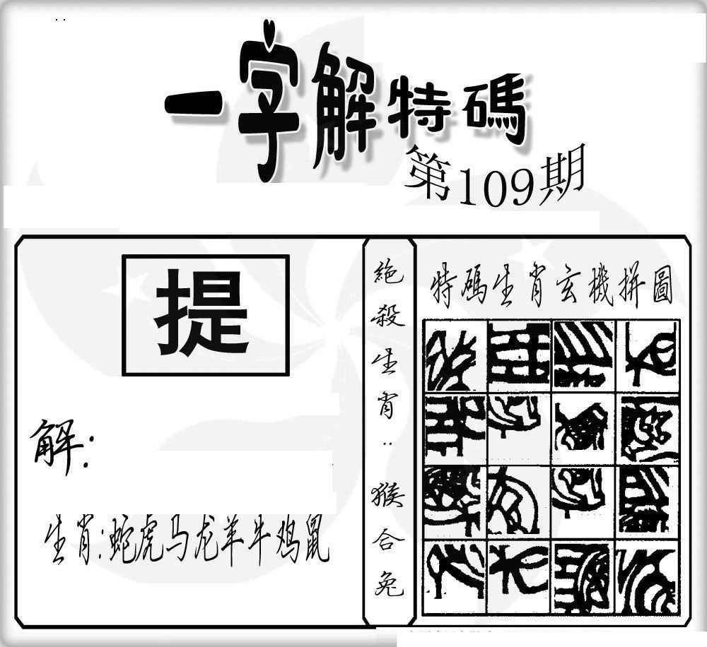 | 主题 :109期:一字解特码 |