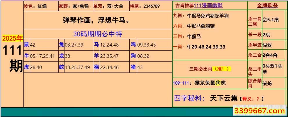| 主题 :111期:小鱼儿30码期期中+幽默猜测 |