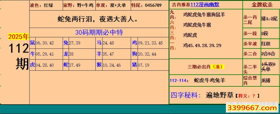 | 主题 :112期:小鱼儿30码期期中+幽默猜测 |