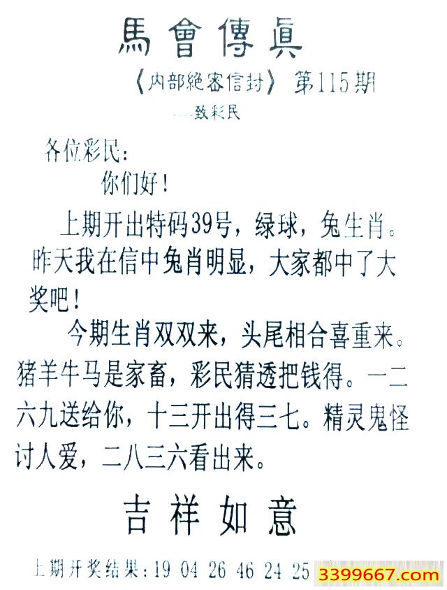 | 主题 :115期:首发推荐:≮馬會傳眞≯→(香港正版) |