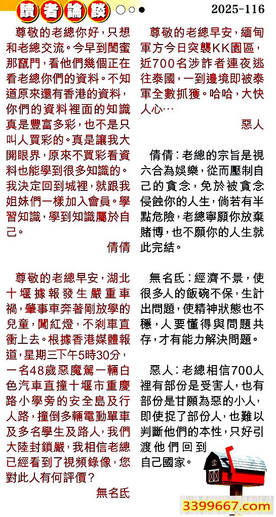| 主题 :116期:彩民推荐〖貼信讀者論壇〗 |