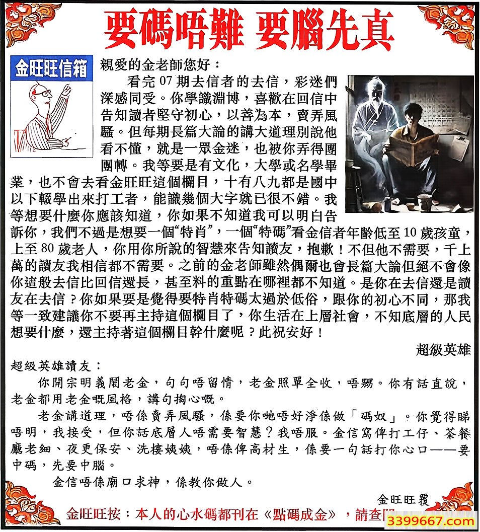 主题 :127期:金旺旺信箱彩民推荐→→《要碼唔難 要腦先真》