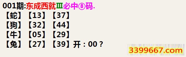 001期:东成西就Ⅲ必中⑧码