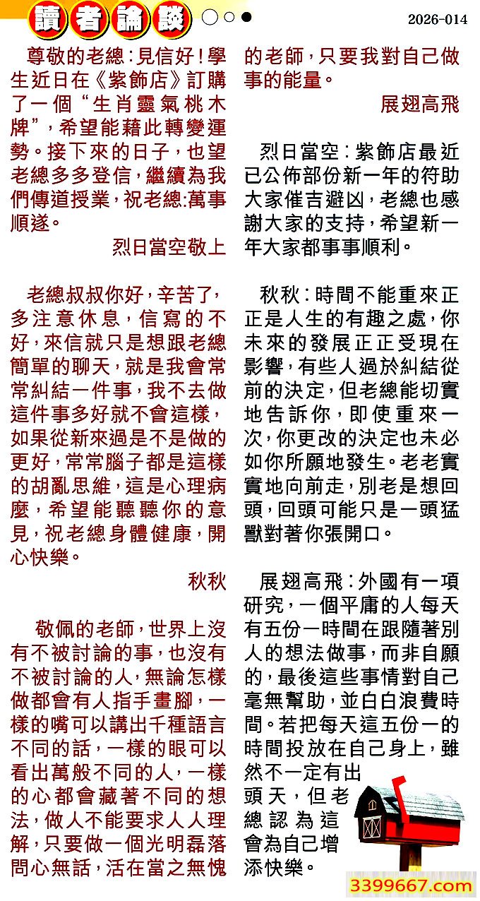 | 主题 :014期:彩民推荐〖貼信讀者論壇〗 |