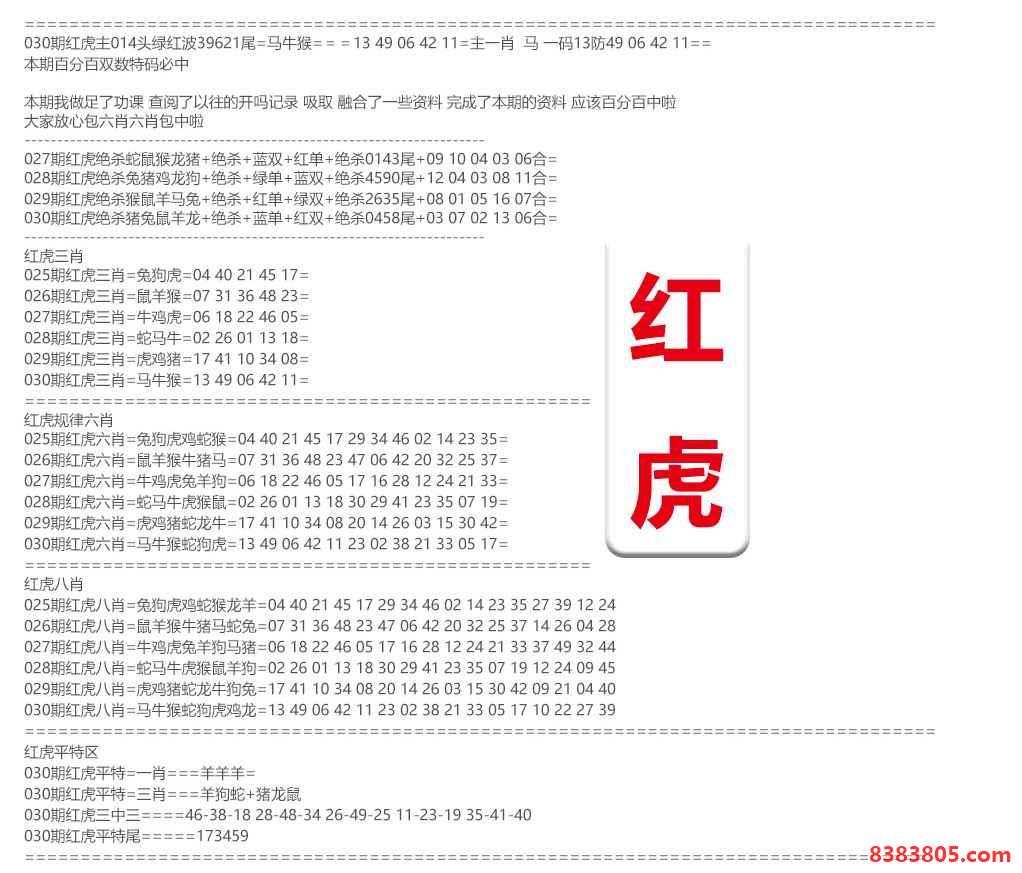 030期:红虎资料