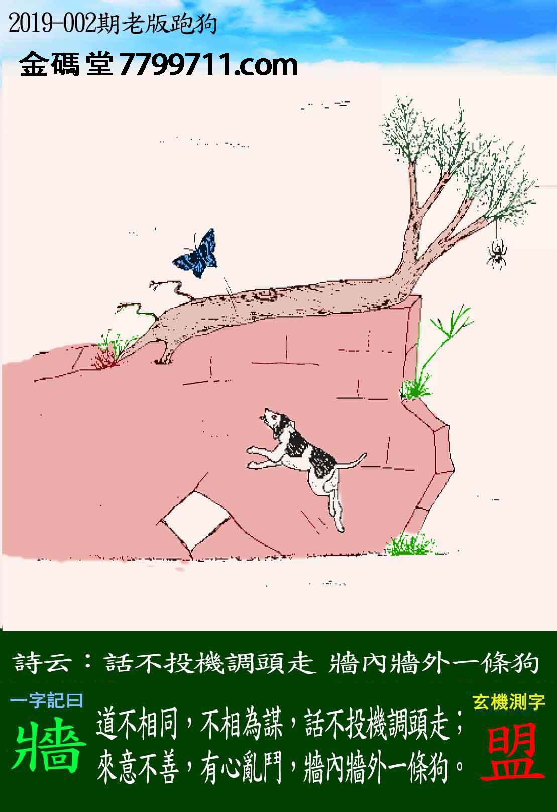 002期:老版跑狗一字記之曰【牆】玄機測字《盟》