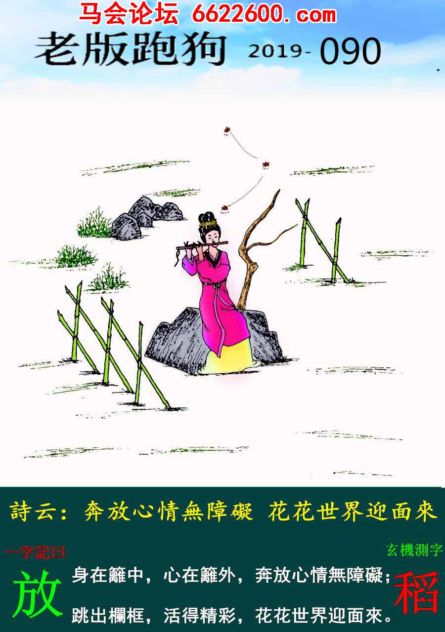 090期:老版跑狗一字記之曰【放】玄機測字《稻》