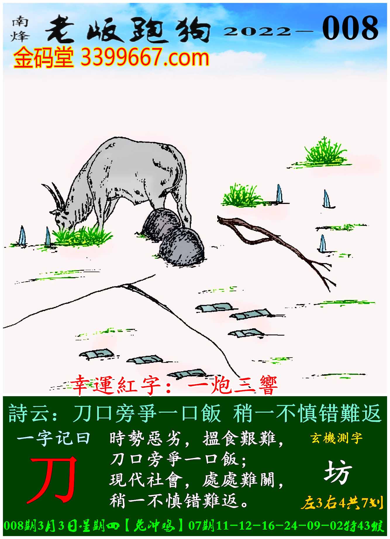 008期老版跑狗一字記之曰:【刀】