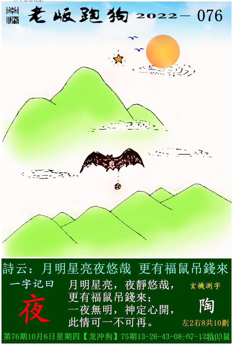 主题 : 076期老版跑狗一字記之曰:【夜】 玄機測字:《陶》
