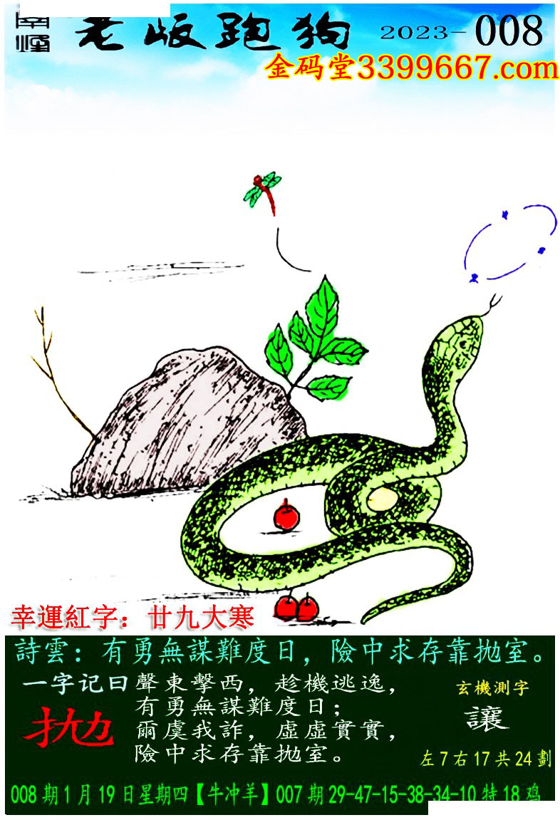 008期老版跑狗一字記之曰:【拋】