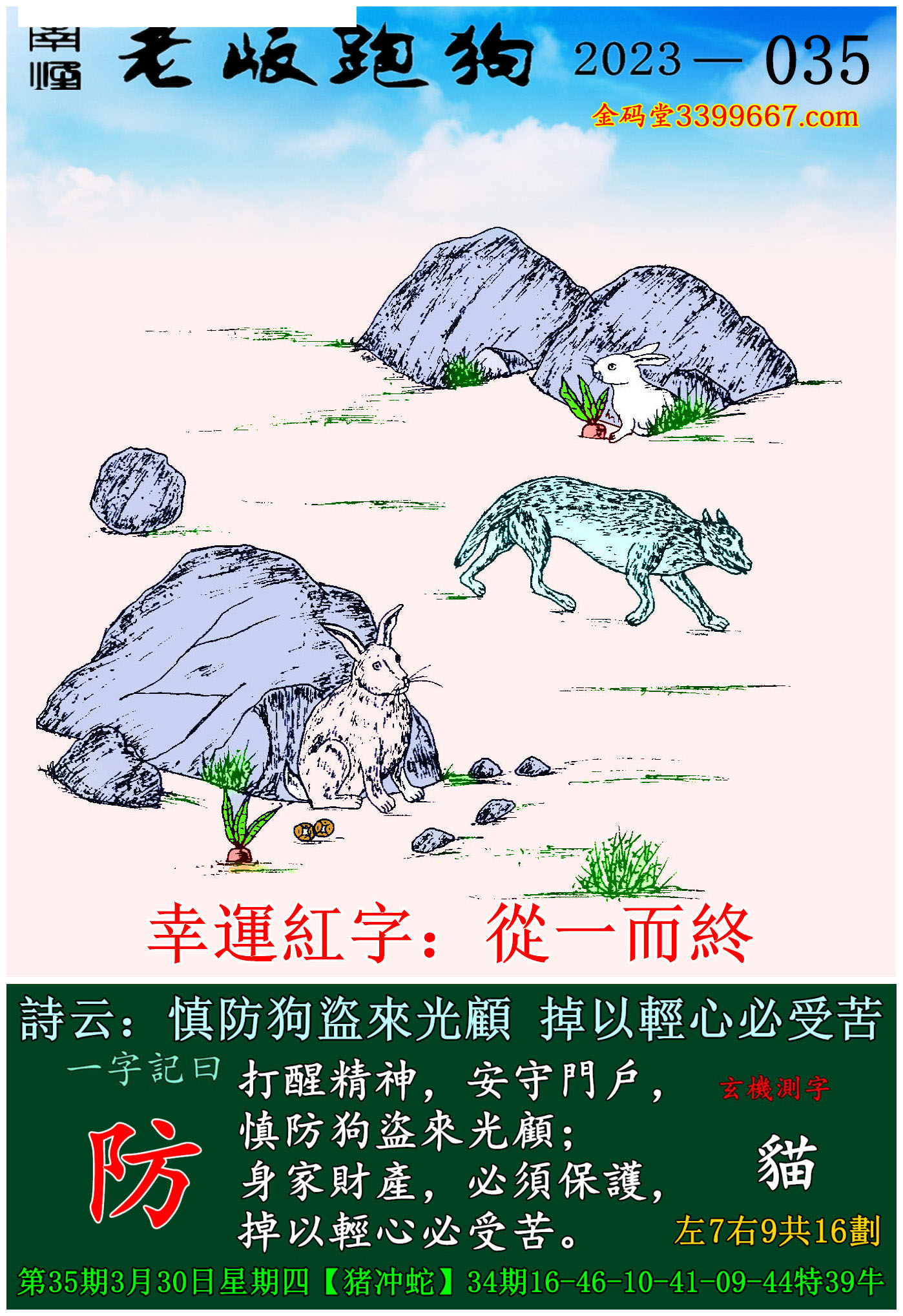 035期老版跑狗一字記之曰:【防】