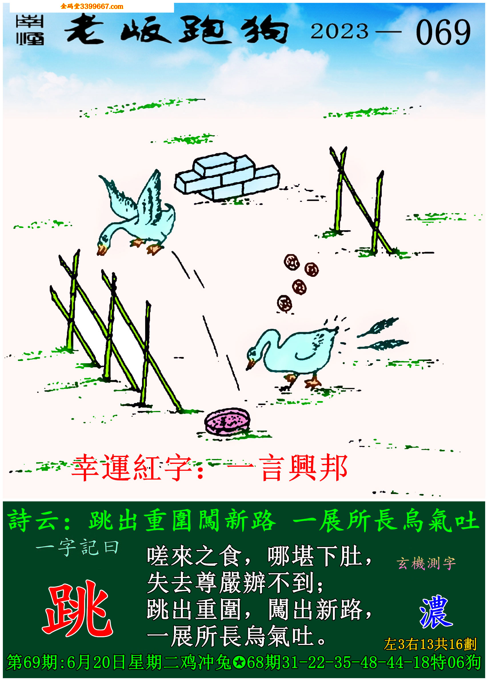 主题 : 069期老版跑狗一字記之曰:【跳】玄機測字:《濃》