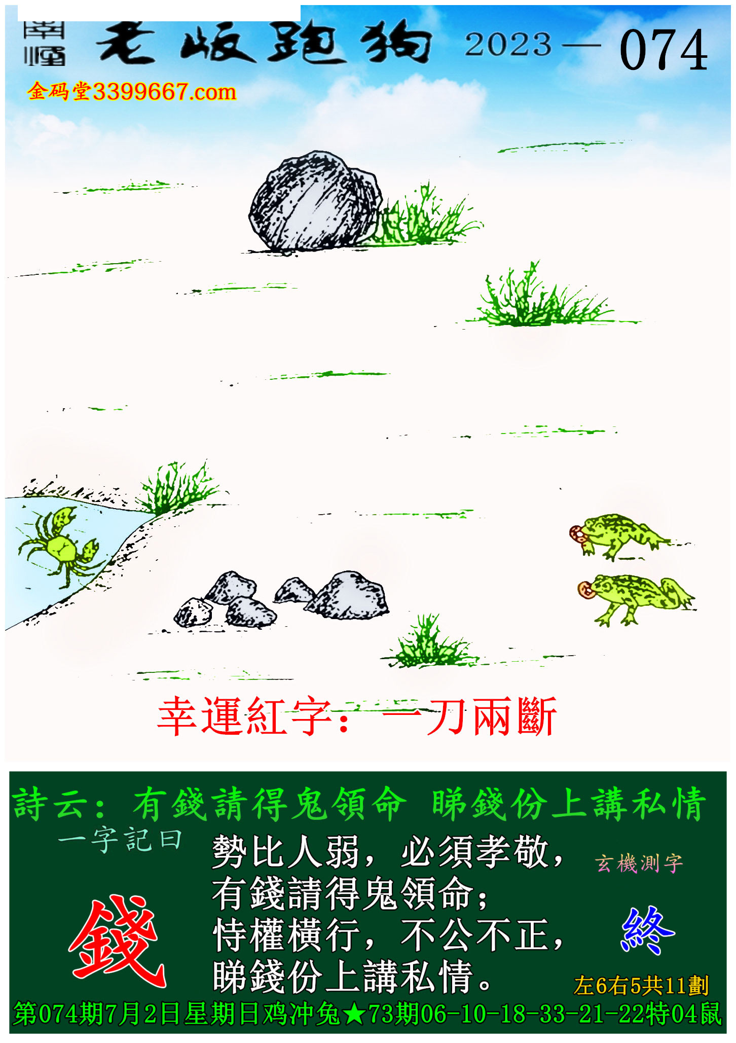074期老版跑狗一字記之曰:【錢】