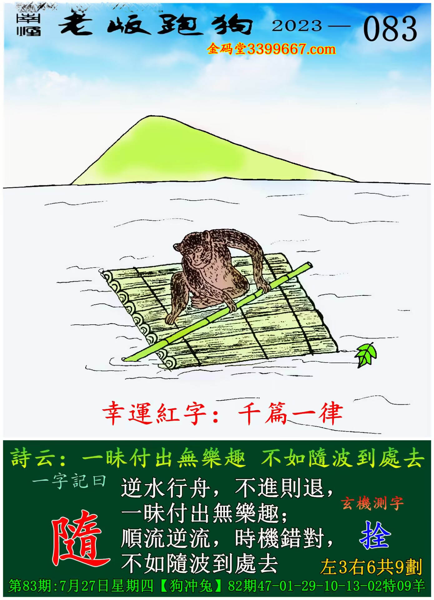 083期老版跑狗一字記之曰:【隨】
