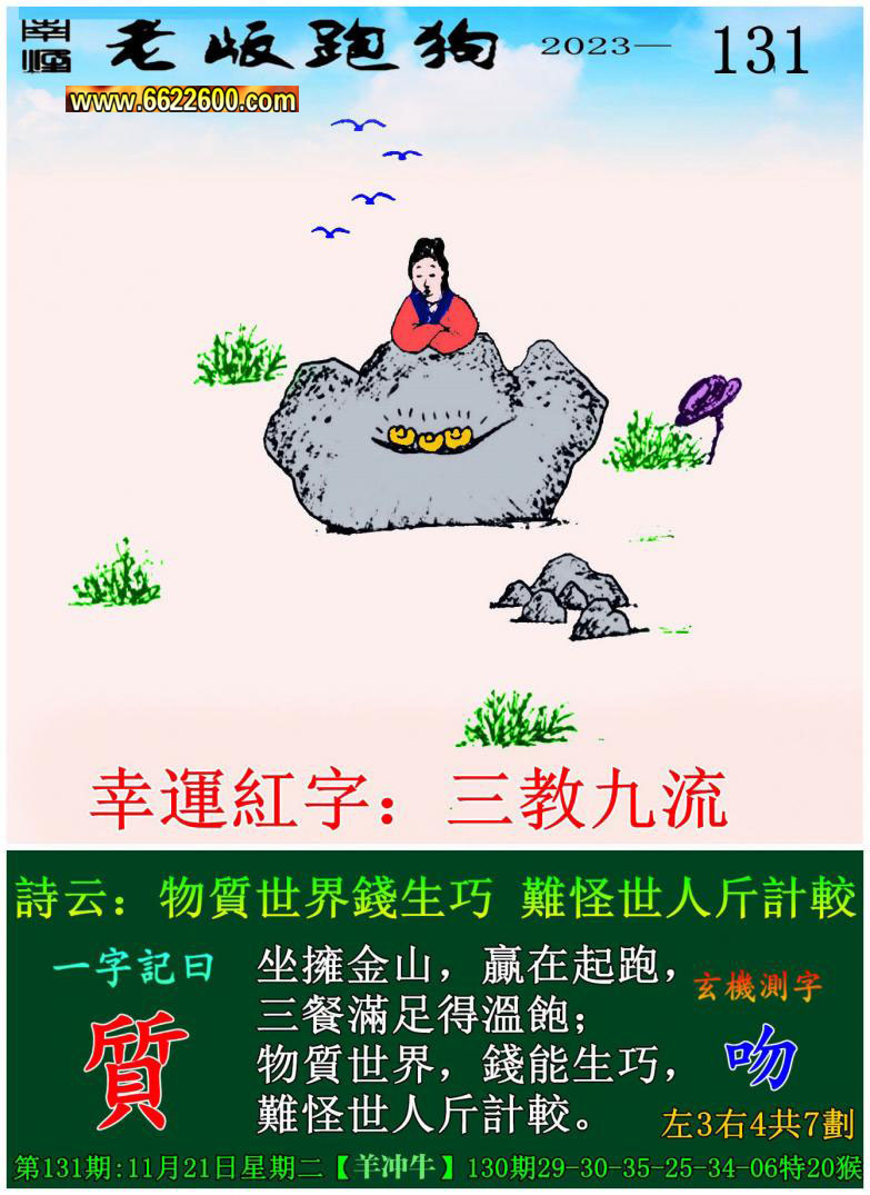 主题 : 131期老版跑狗一字記之曰:【質】 玄機測字:《吻》
