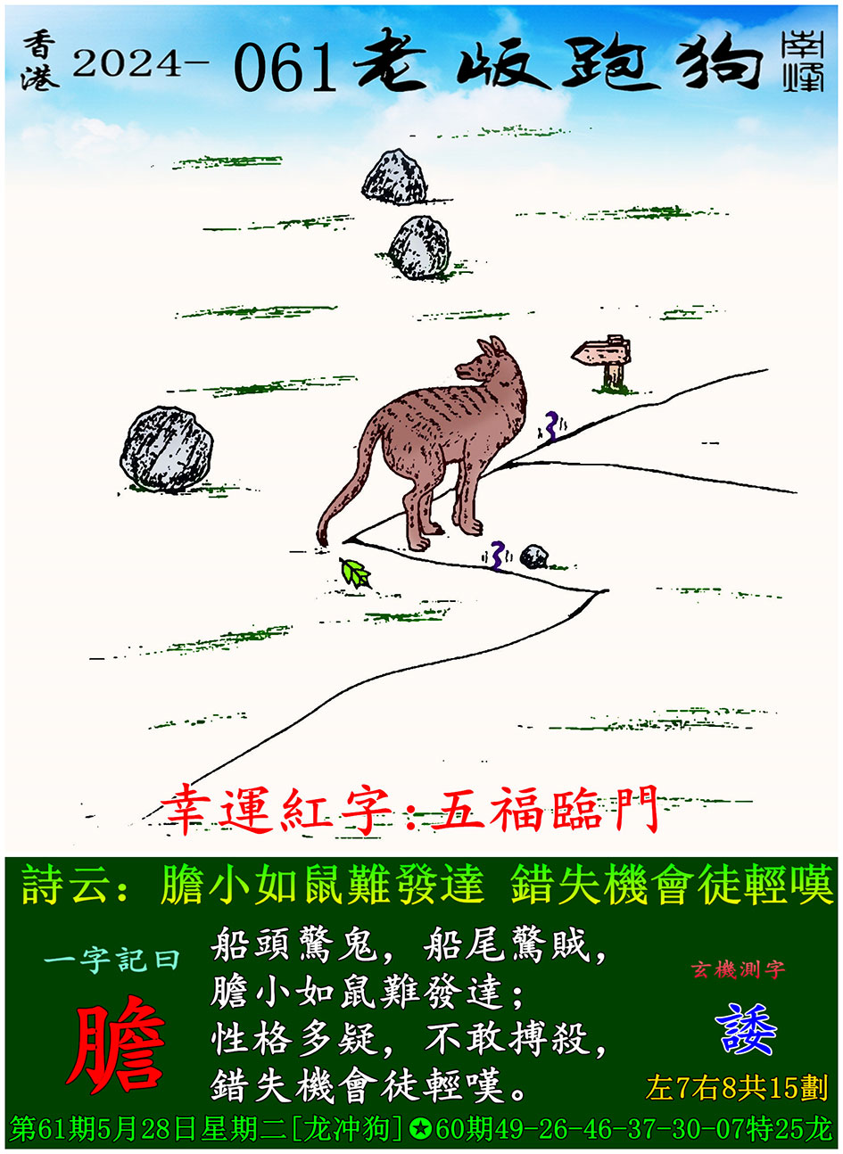 主题 : 061期老版跑狗一字記之曰:【膽】 玄機測字:《諉》