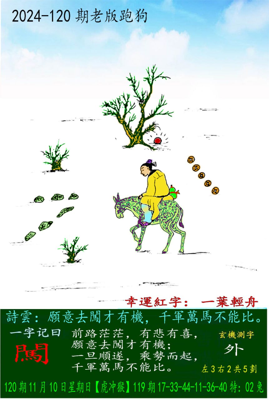 120期老版跑狗一字記之曰:【闖】 玄機測字:《外》