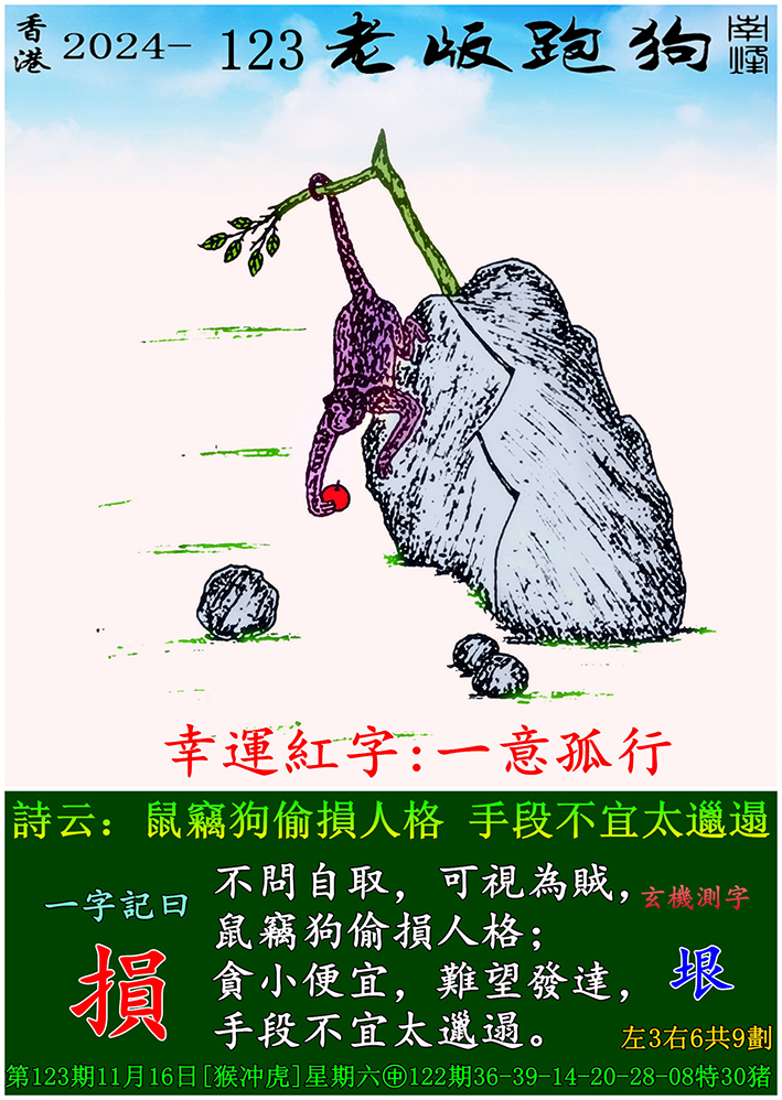 123期老版跑狗一字記之曰:【損】