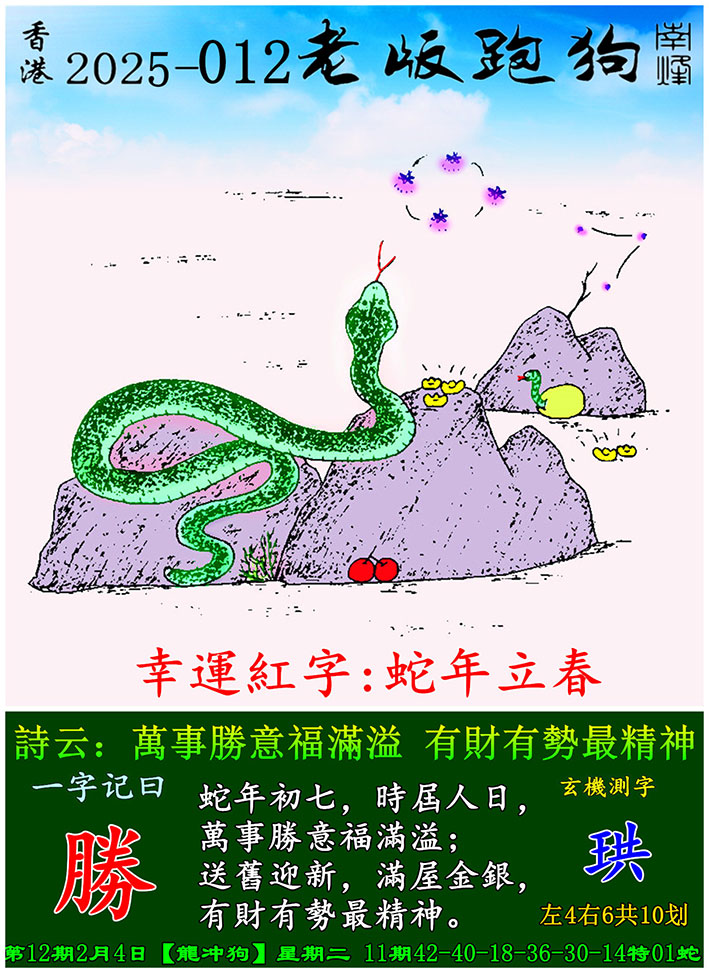 012期老版跑狗一字記之曰:【勝】