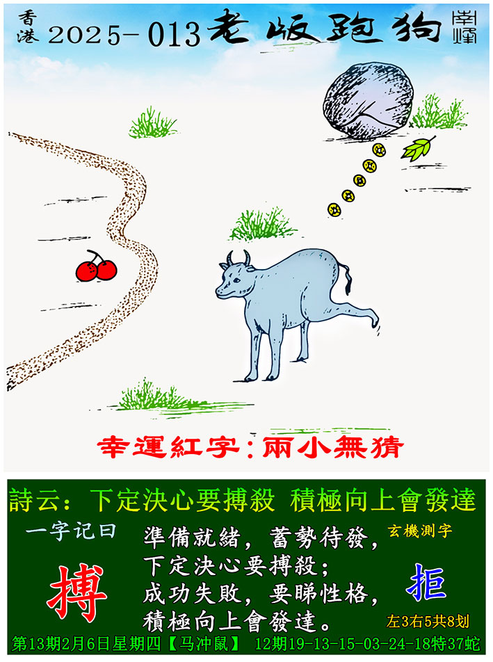 013期老版跑狗一字記之曰:【搏】 玄機測字:《拒》