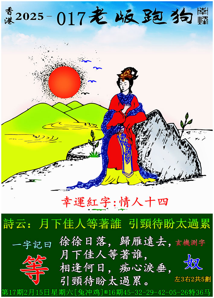 主题 : 017期老版跑狗一字記之曰:【等】 玄機測字:《奴》