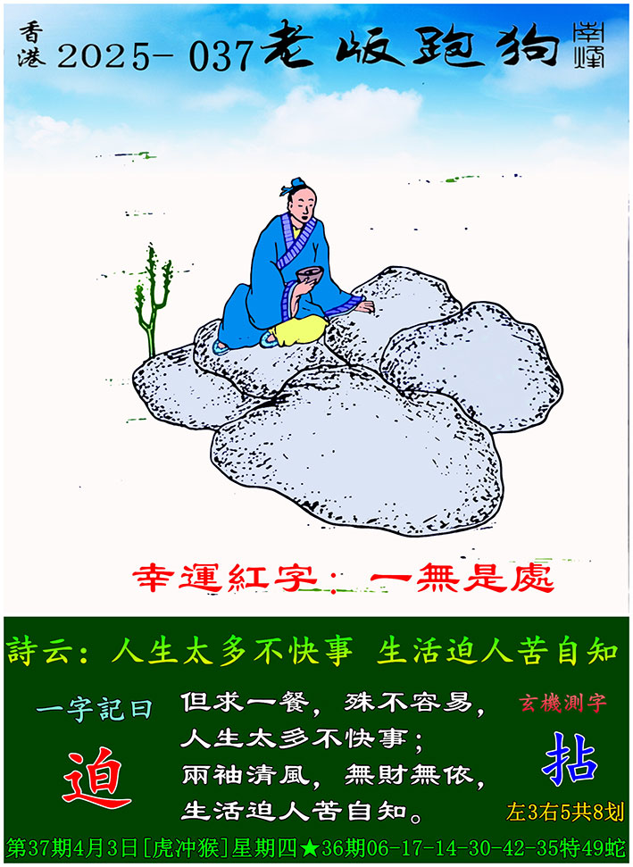 主题 : 037期老版跑狗一字記之曰:【迫】 玄機測字:《拈》