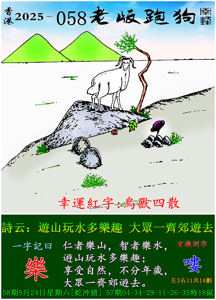 058期老版跑狗一字記之曰:【樂】 玄機測字:《嘍》