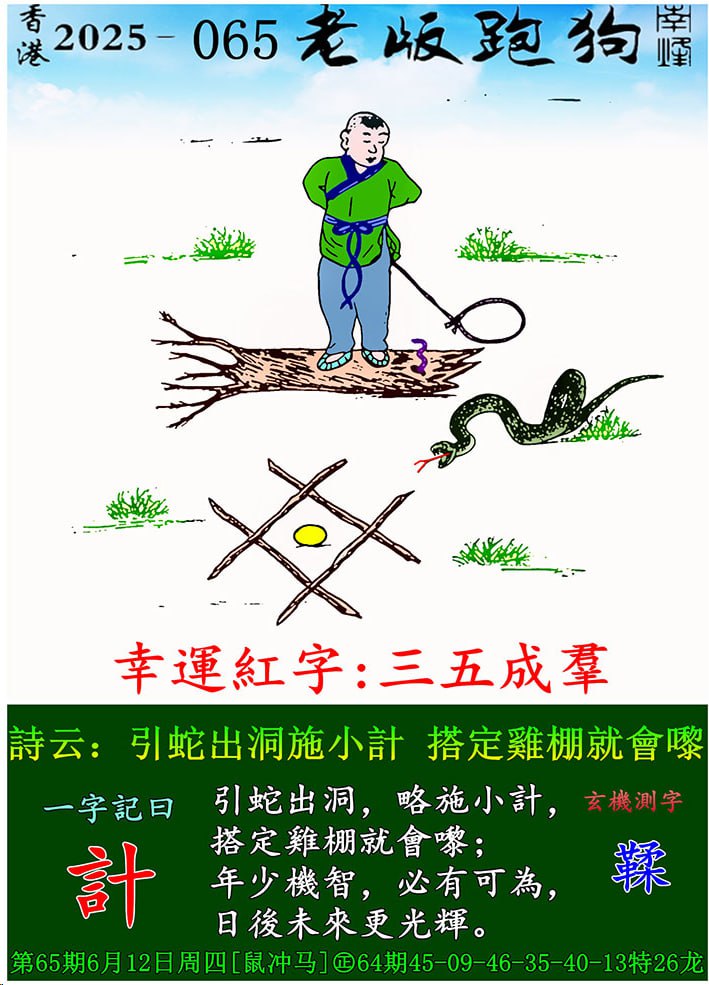 主题 : 065期老版跑狗一字記之曰:【計】 玄機測字:《鞣》