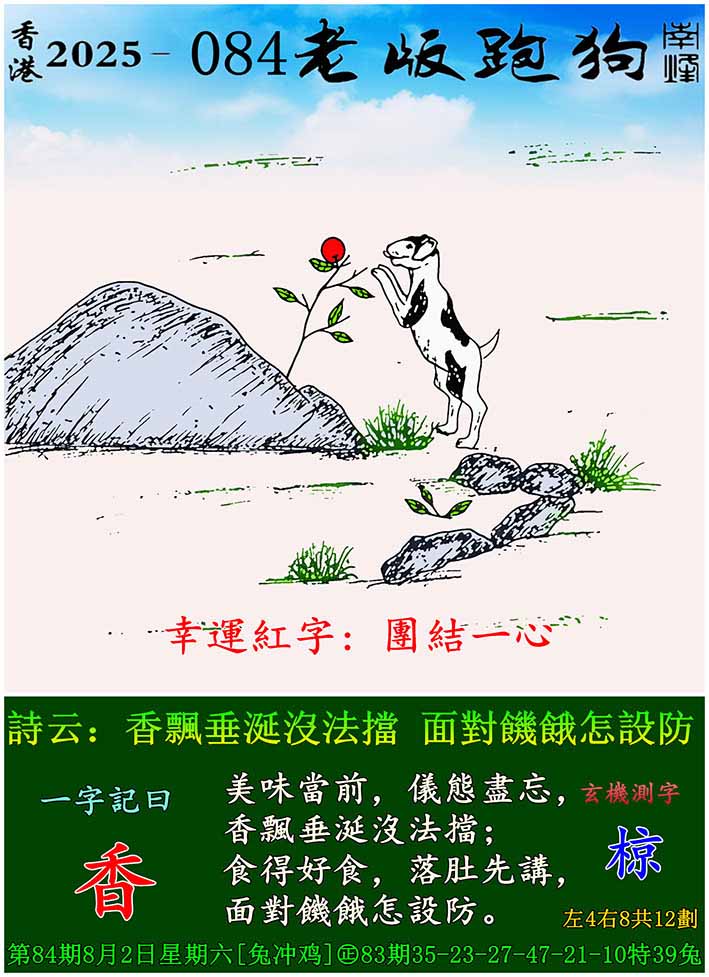 084期老版跑狗一字記之曰:【香】 玄機測字:《椋》
