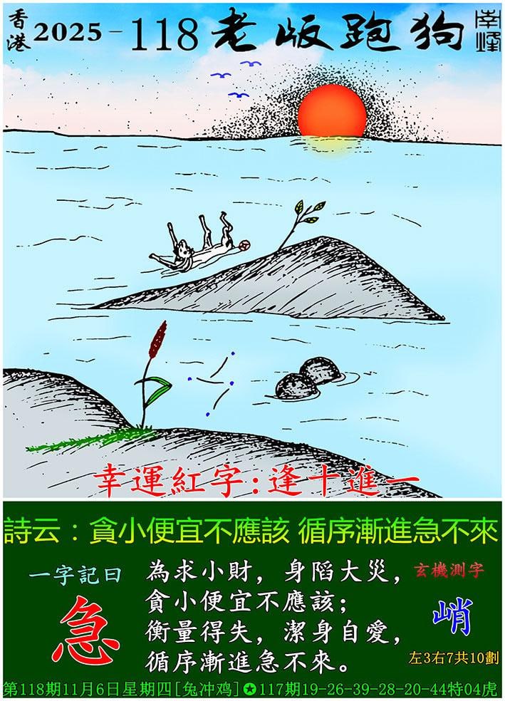 主题 : 118期老版跑狗一字記之曰:【急】 玄機測字:《峭》