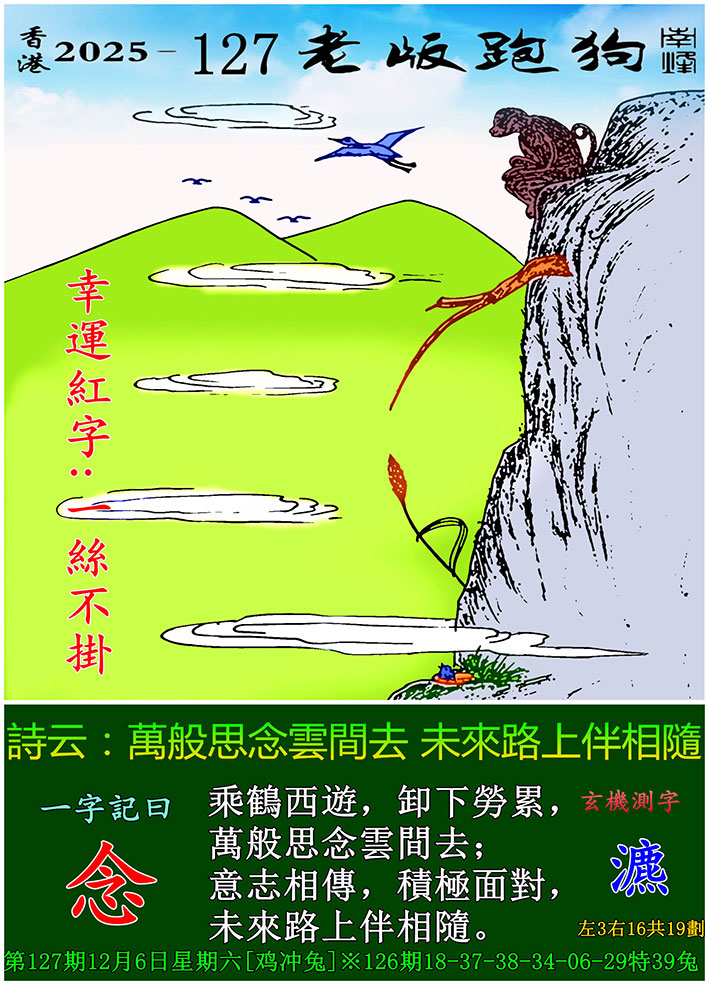 主题 : 127期老版跑狗一字記之曰:【念】 玄機測字:《瀌》