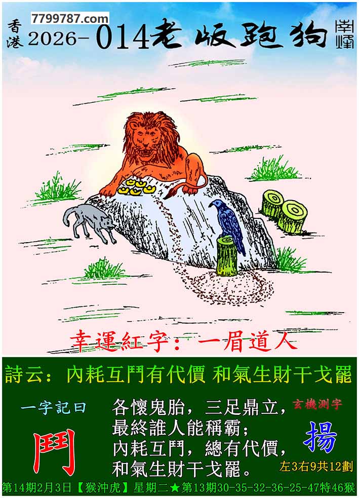 主题 : 014期老版跑狗一字記之曰:【鬥】 玄機測字:《揚》