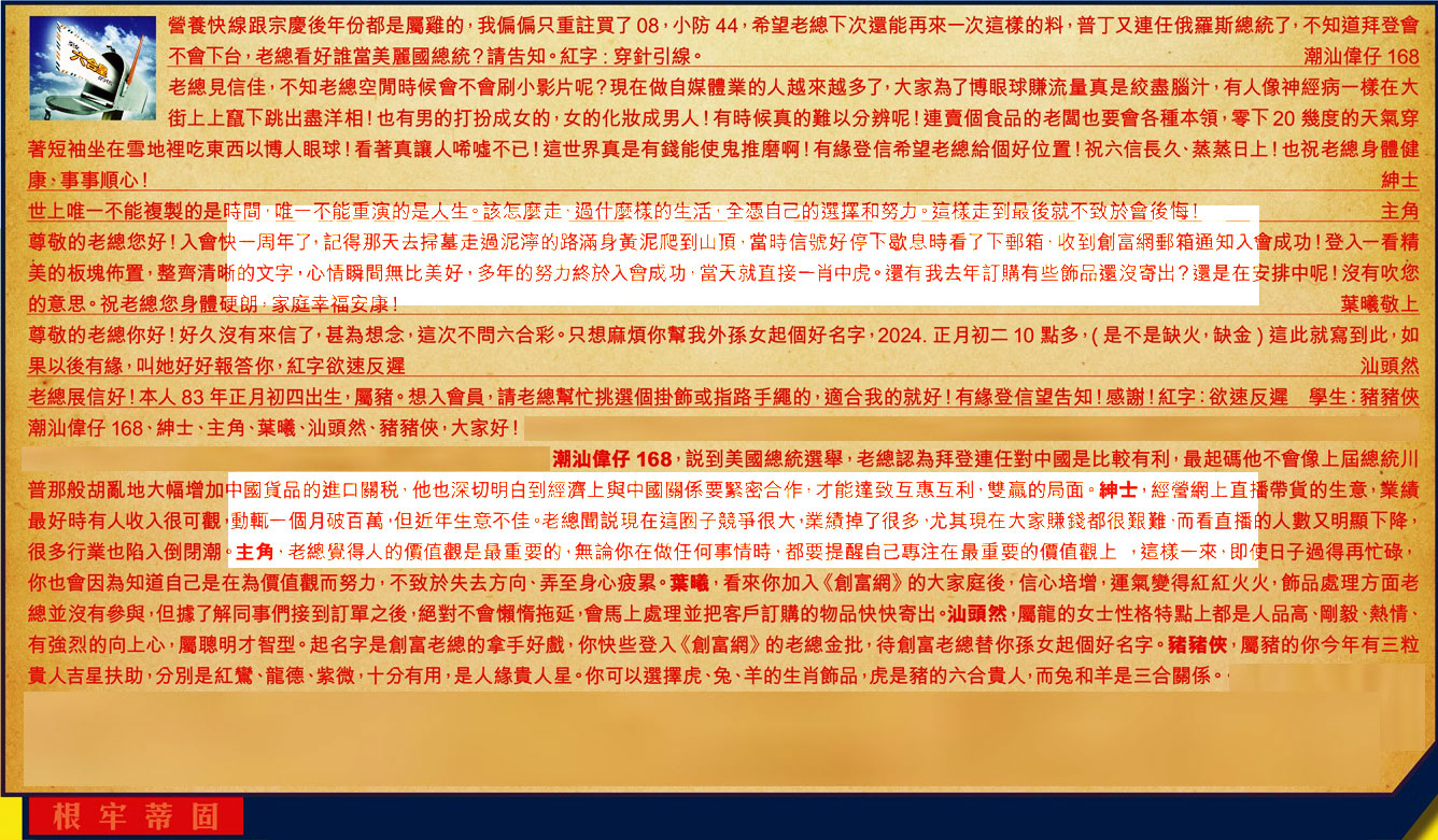【1】.營養快線跟宗慶後年份都是屬雞的,我偏偏只重詿買了 08,小防 44,希望老總下次還能再來一次這樣的料,普丁又連任俄羅斯總統了,不知道拜登會不會下台,老總看好誰當美麗國總統?請告知。紅字:穿針引線。 潮汕偉仔168