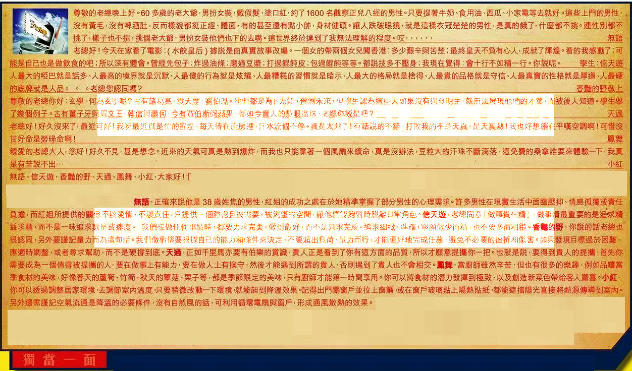 →〖無語〗:正確來說他是38歲姓焦的男性,紅姐的成功之處在於她精準掌握了部分男性的心理需求。許多男性在現實生活中面臨壓抑、情感孤獨或責任負擔,而紅姐所提供的關係不談愛情、不談责任只提供一個隱密且被需要、被渴望的空間、讓他們能夠暫時脱離日常角色。