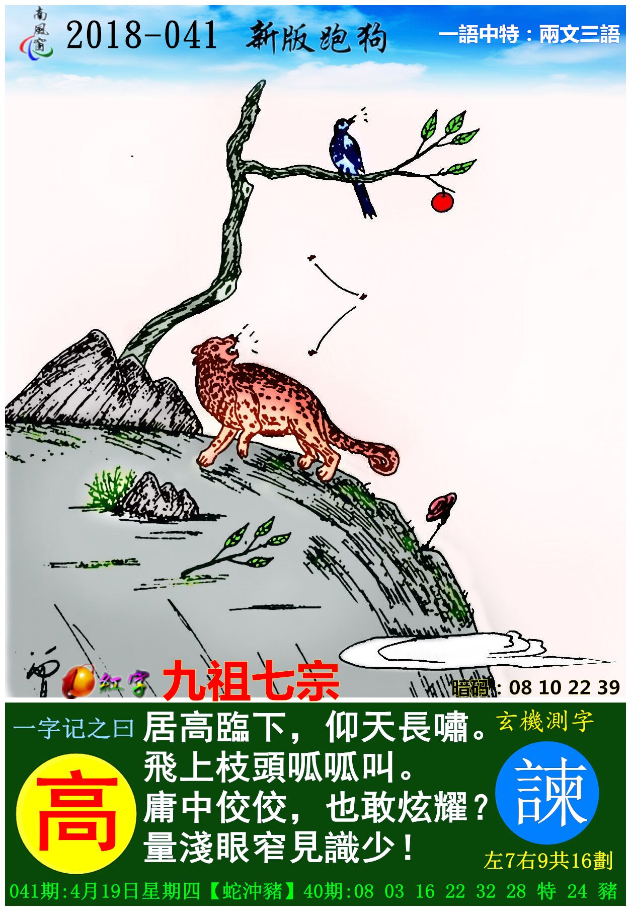 主题 : 041期:新版跑狗一字記之曰:【高】 玄機測字《諫》