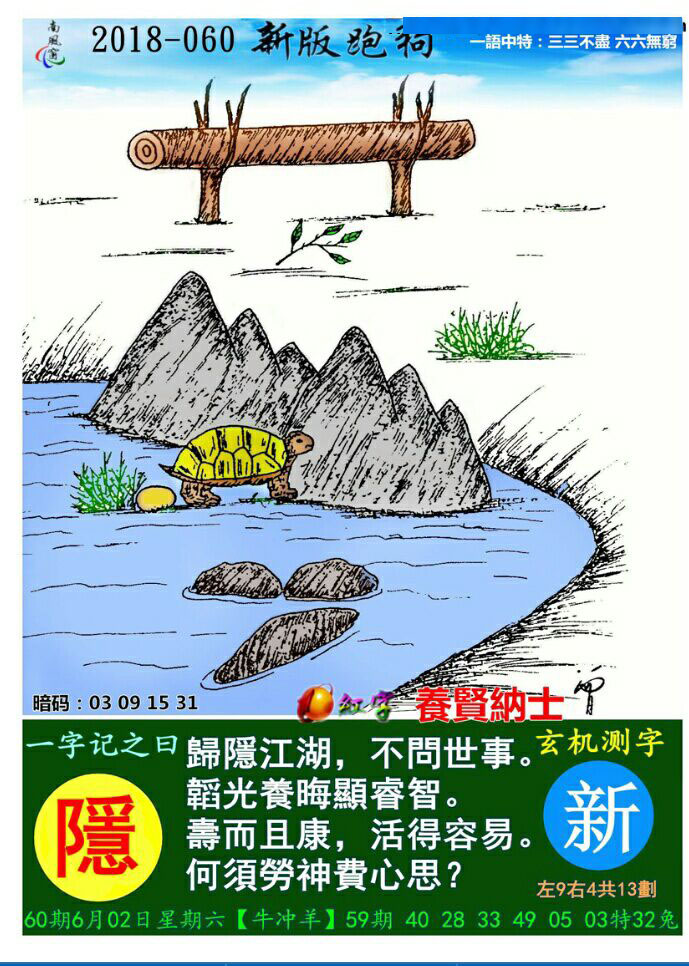 主题 : 060期:新版跑狗一字記之曰【隱】玄機測字《新》