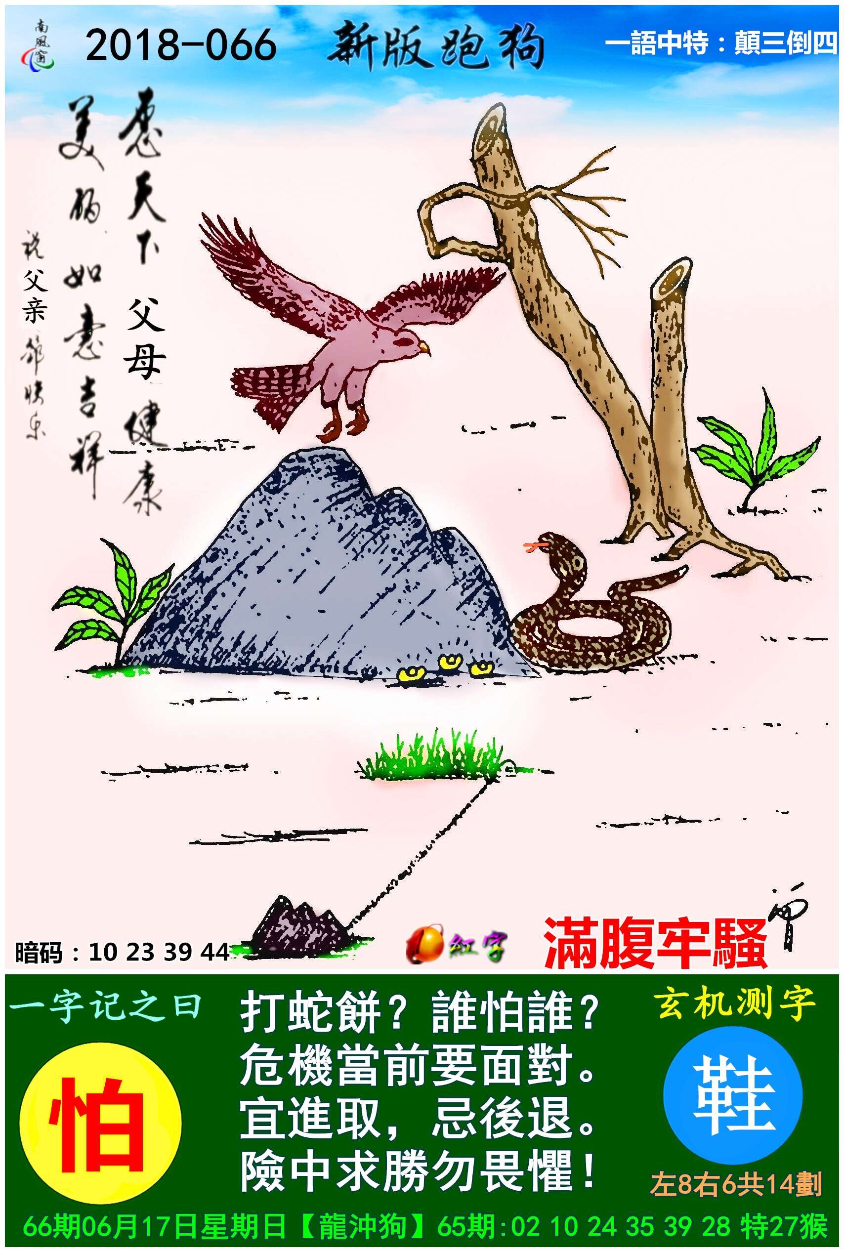 主题 : 066期:新版跑狗一字記之曰【怕】玄機測字《鞋》
