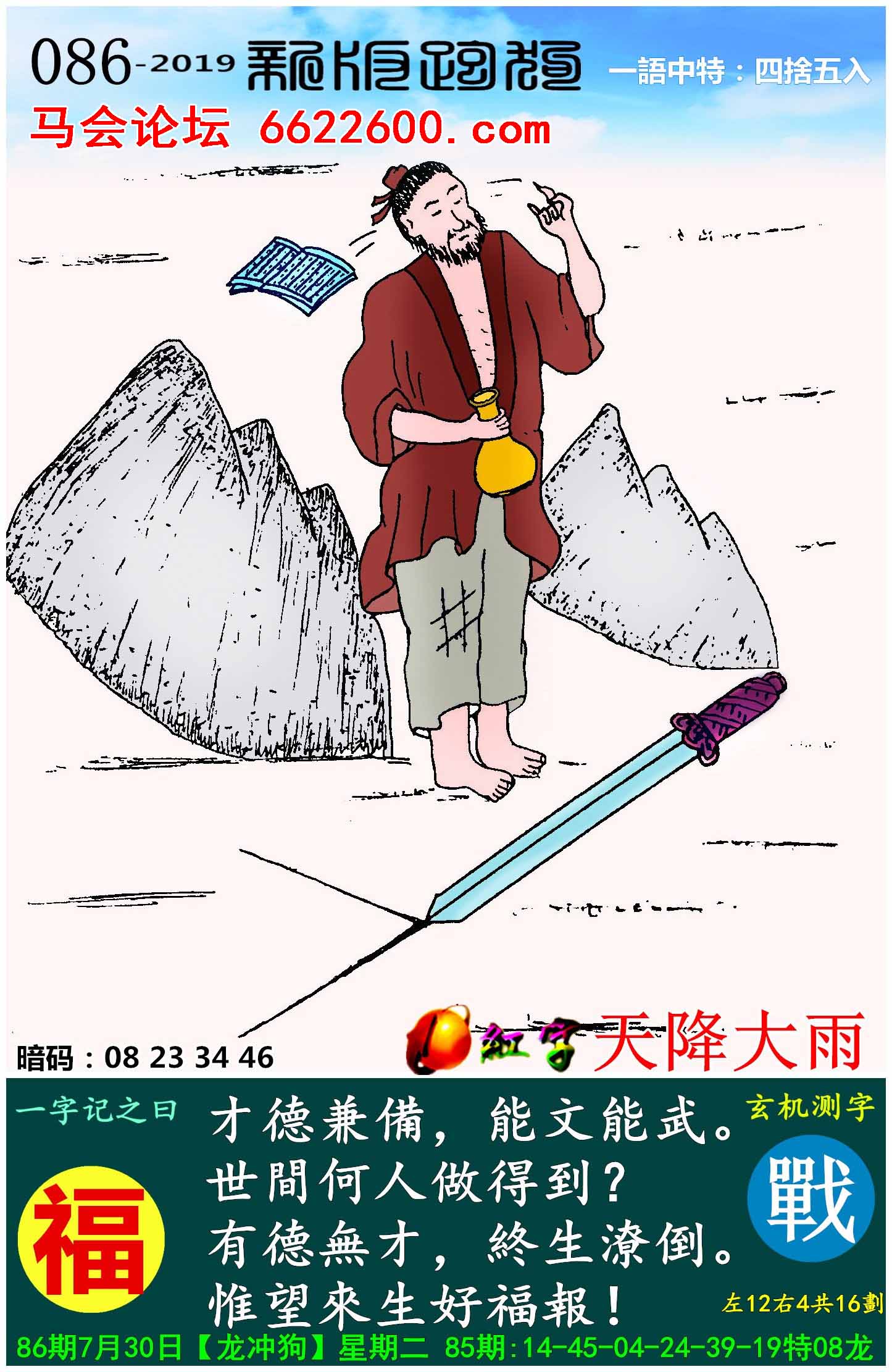 主题 : 086期:新版跑狗一字記之曰【福】玄機測字:《戰》