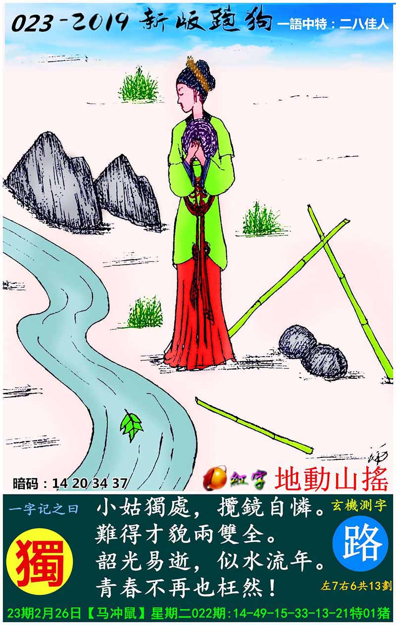 031期新版跑狗一字記之曰:【獨】