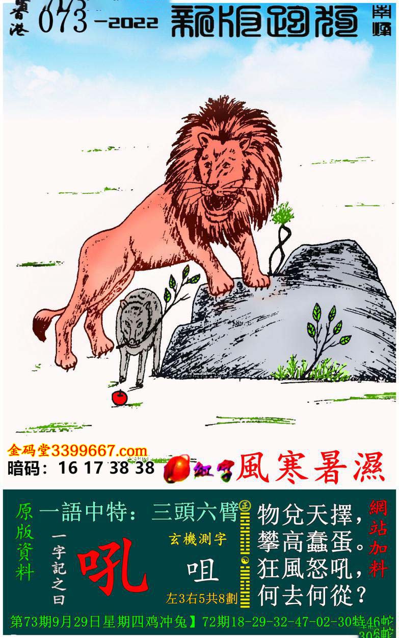 主题 : 073期:新版跑狗一字記之曰【吼】玄機測字:《咀》
