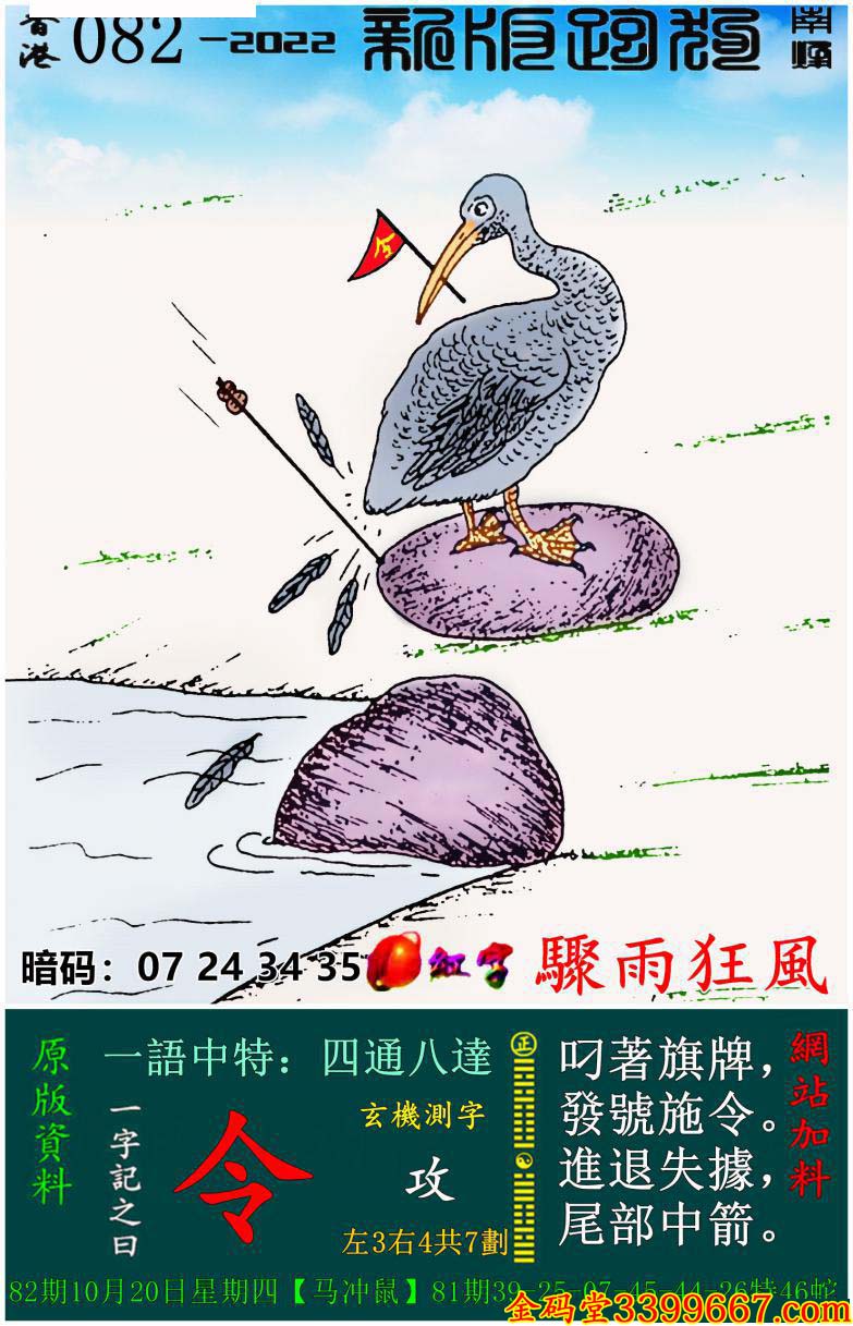 082期:新版跑狗一字記之曰【令】玄機測字:《攻》