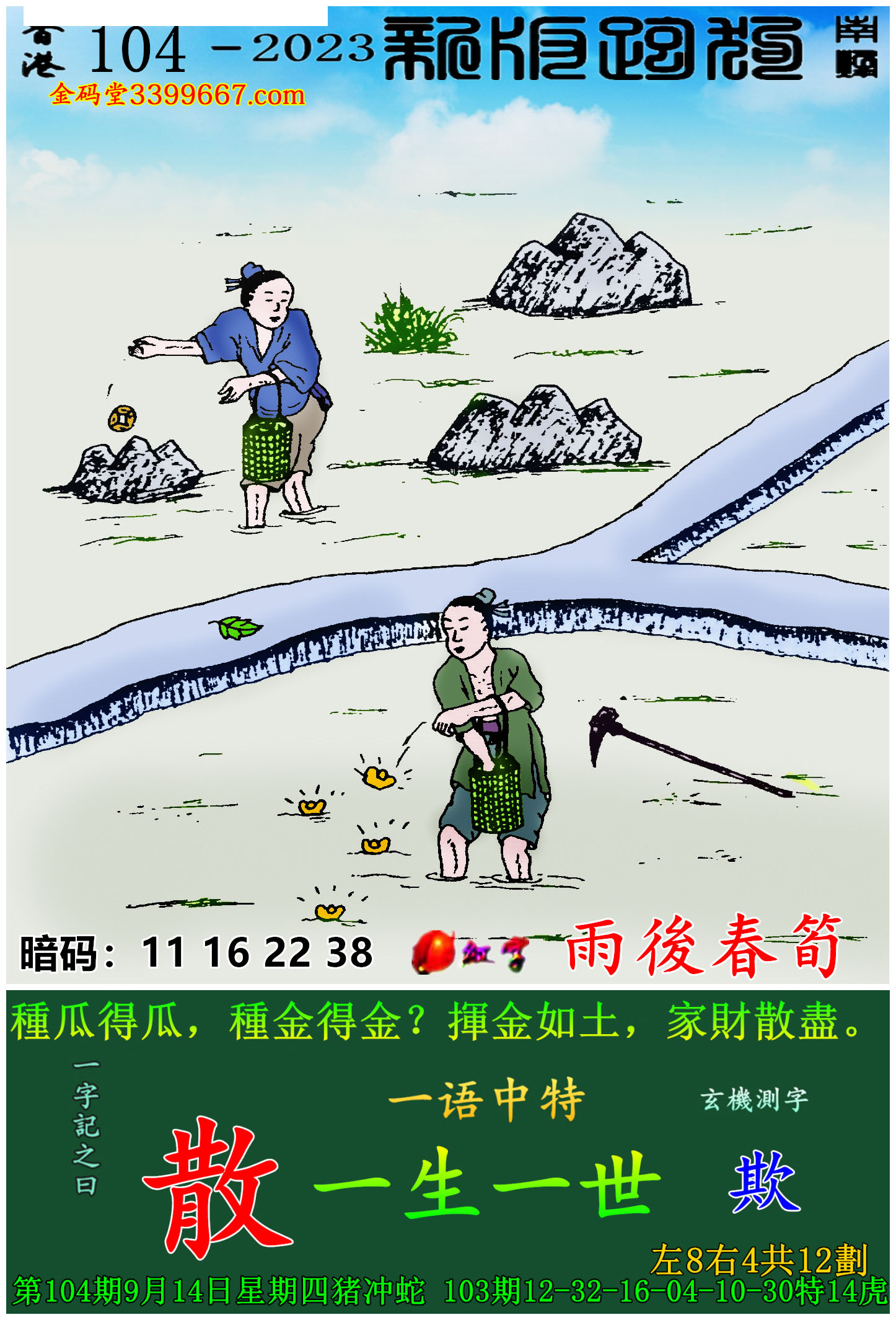 主题 : 104期:新版跑狗一字記之曰【散】玄機測字:《欺》