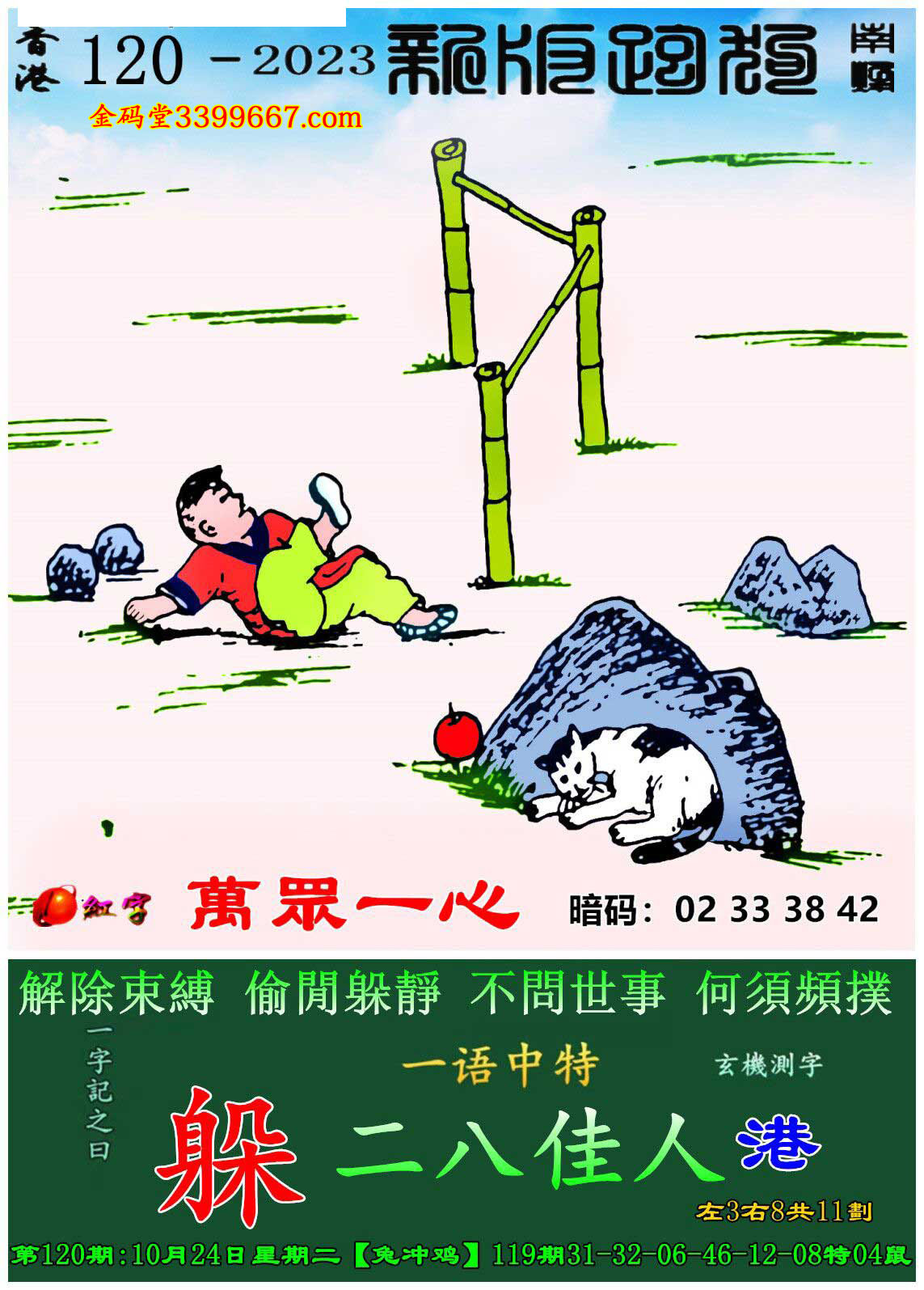 主题 : 120期:新版跑狗一字記之曰【躲】玄機測字:《港》