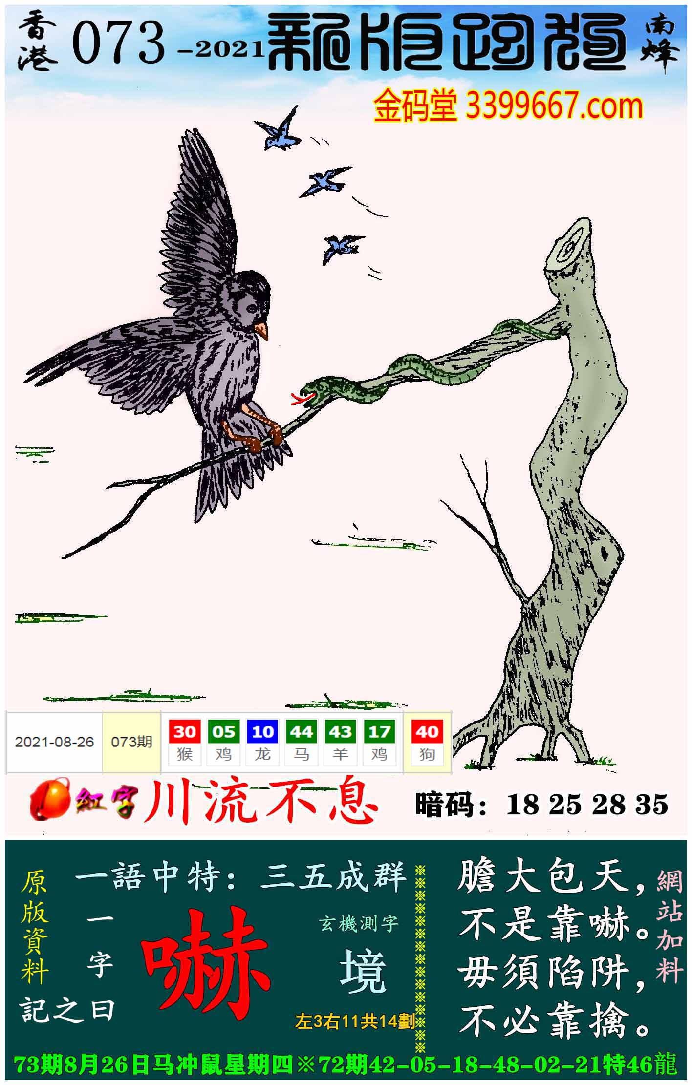096期:新版跑狗一字記之曰【嚇】 玄機測字:【深】