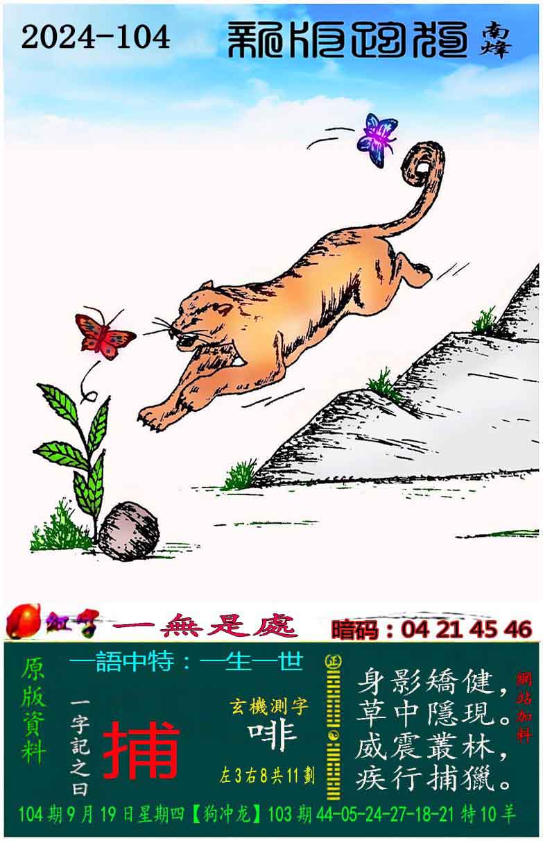 104期新版跑狗一字記之曰:【捕】