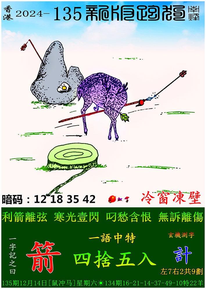 135期:新版跑狗一字記之曰【箭】 玄機測字:【計】