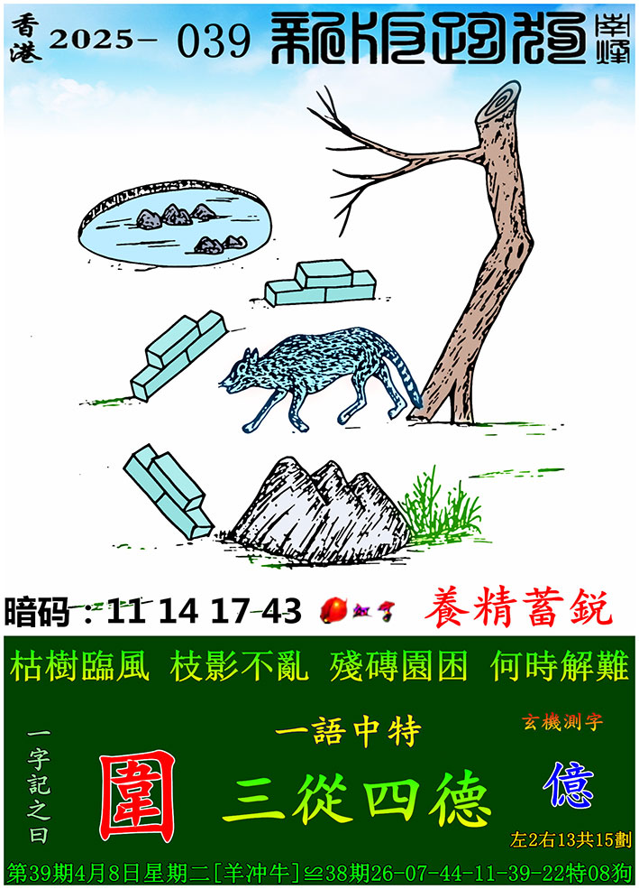 039期:新版跑狗一字記之曰【圍】 玄機測字:【億】