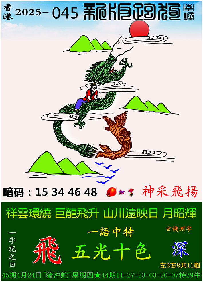 045期:新版跑狗一字記之曰【飛】 玄機測字:【深】